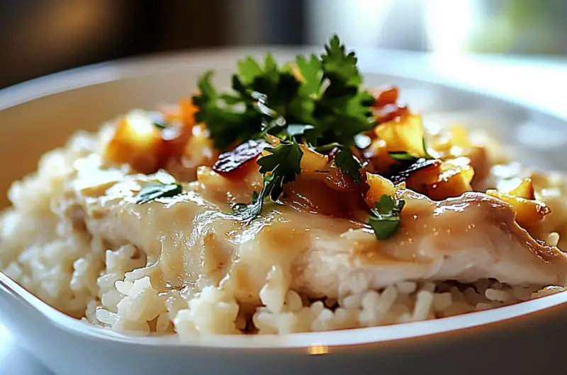 Angel Chicken Rice is a delightful one-pot meal featuring tender chicken cooked with creamy rice infused with aromatic spices and herbs. The dish often includes ingredients like cream of mushroom soup and cheese for added richness and flavor. It’s an easy recipe suitable for family dinners or gatherings since it combines protein and carbs harmoniously in one pan.