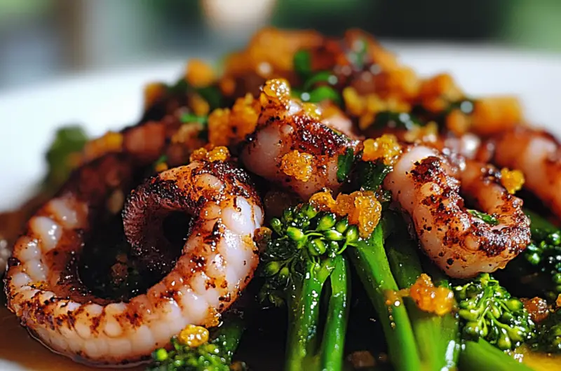 Citrus-Spiced Baby Octopus and Crunchy Broccolini is a vibrant seafood dish that transports you to sun-soaked shores. Tender baby octopus, marinated in zesty lemon and orange, is grilled to perfection while fresh broccolini adds a delightful crunch. This recipe is simple yet visually stunning, making it perfect for summer gatherings or cozy weeknight dinners. With minimal prep time and impressive results, it’s sure to impress your guests and tantalize their taste buds.