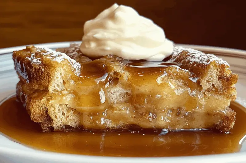 In summary, Bread Pudding with Caramel Sauce combines simple ingredients to create a rich and comforting dessert that’s perfect for any occasion. Using leftover bread not only reduces waste but also enhances flavor and texture in this delightful dish. healthy apple oatmeal bake With easy preparation steps and customization options available, this recipe is ideal for both novice cooks and experienced bakers alike. homemade apple crisp Enjoying this warm dessert topped with luscious caramel sauce makes every bite truly satisfying!