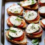 In conclusion, making perfect Caprese Crostini (Canapés) involves choosing quality ingredients and being mindful during assembly. Remember to select crusty bread to maintain texture; always use fresh ingredients like ripe tomatoes and high-quality mozzarella; balance flavors carefully so each component shines without overpowering others; finally, assemble just before serving to keep everything crisp and delightful. By following these suggestions and avoiding common pitfalls, you’ll impress your guests with these elegant yet simple appetizers at your next gathering! Enjoy crafting delicious memories through your culinary creations!