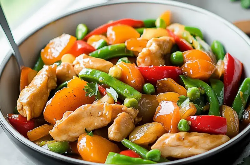 Imagine serving this incredible dish during a casual weeknight dinner or impressing guests at your next gathering. The sweet-and-tangy sauce envelops the perfectly cooked chicken while the fresh vegetables add both nutrition and color. Whether it’s a family meal or an intimate dinner for two, this stir fry is sure to elevate any occasion with its irresistible aroma and mouthwatering flavors.