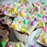 Easter Candy Bark is a delightful treat made by melting chocolate and spreading it onto a baking sheet, then topping it with various colorful candies and decorations typically associated with Easter celebrations. This sweet treat offers endless customization options with different types of chocolates and toppings like sprinkles, jelly beans, or crushed cookies. It’s an easy-to-make dessert that’s perfect for holiday gatherings or as a fun activity with kids during the festive season.