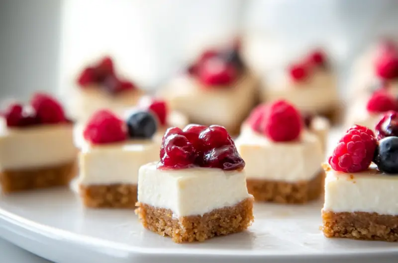 In summary, creating delightful Easy No-Bake Cheesecake Bites requires careful attention to detail at every step of the process. Use room temperature ingredients for a smooth texture, don’t skimp on sweeteners to enhance flavor, ensure proper chilling time for firmness, and choose high-quality ingredients to elevate your bites’ taste profile. Remember these key points as you prepare this delicious treat; they will guide you toward achieving perfect results every time you make these delightful desserts! Enjoy sharing these easy-to-make bites at gatherings or indulging in them at home!