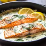 In summary, Creamy Lemon Dill Salmon is a delicious and easy-to-make dish that brings vibrant flavors to your table. With simple ingredients like fresh dill and lemon juice, you can create a creamy sauce that elevates the rich taste of salmon. Feel free to customize this recipe by using healthier alternatives or pairing it with nutritious sides like vegetables or salads. Enjoy this delightful dish any night of the week for a satisfying meal that everyone will love! For more inspiration, check out this Garlic Butter Lobster Tail Recipe recipe.