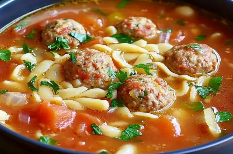 Italian Meatball Soup is the ultimate comfort food, combining juicy meatballs with a rich, savory broth filled with fresh vegetables and al dente pasta. This hearty soup is perfect for chilly evenings or family gatherings, providing warmth and satisfaction in every bowl. Easy to prepare yet impressive enough for special occasions, it’s sure to become a beloved staple in your home.