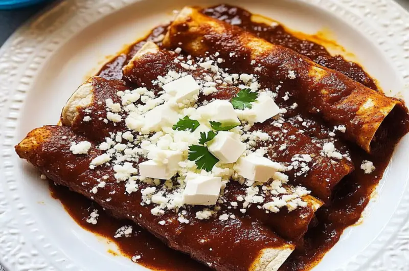 First, prepare the mole sauce. While it’s simmering, warm up the tortillas in a dry skillet. Once they’re soft, fill them with your favorite ingredients, roll them up, and pour that luscious mole over the top. Bake until bubbly for perfect results.