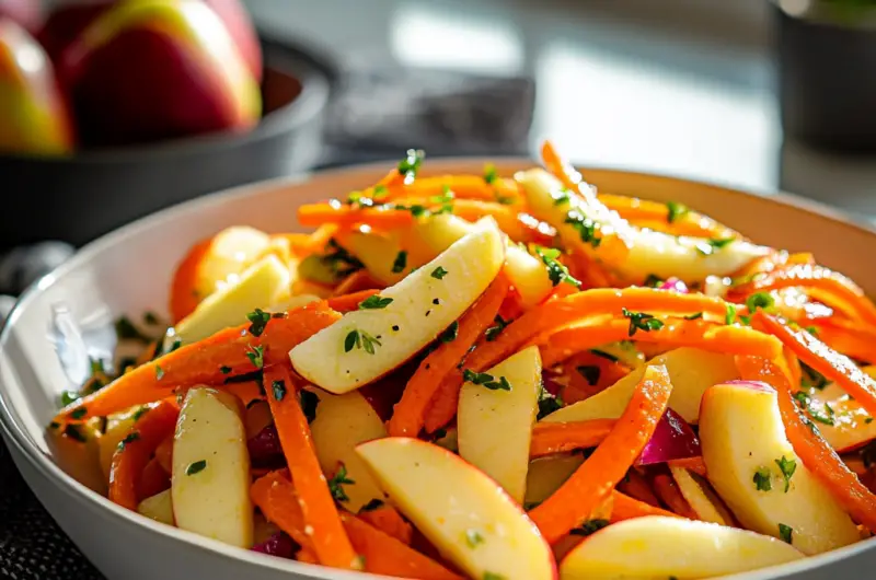 Indeed! The Quick Carrot & Apple Salad packs plenty of nutrition into every bite. Carrots are rich in vitamins A and C while providing dietary fiber essential for digestive health. Apples contribute additional fiber along with antioxidants that support overall wellness. By opting for a light vinaigrette instead of heavier dressings, you control calorie intake while still enjoying robust flavors! This salad serves as an excellent side dish or light meal option suitable for various dietary preferences.