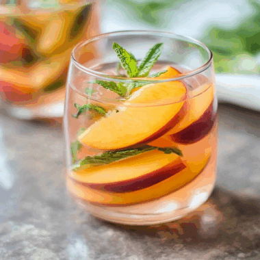 - Serve over ice, garnished with additional peach slices or mint if desired.