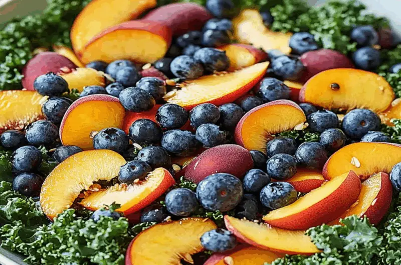 The Summer Peach and Blueberry Kale Salad is a vibrant dish that celebrates seasonal flavors while offering numerous health benefits. Combining fresh ingredients like kale, peaches, and blueberries creates a refreshing experience perfect for warm weather meals. Delicious Greek salad pairing Whether you’re serving it at a gathering or enjoying it as a light lunch, this salad is versatile enough to suit any occasion. Remember that you can customize it to fit dietary preferences easily while maintaining its delicious taste!