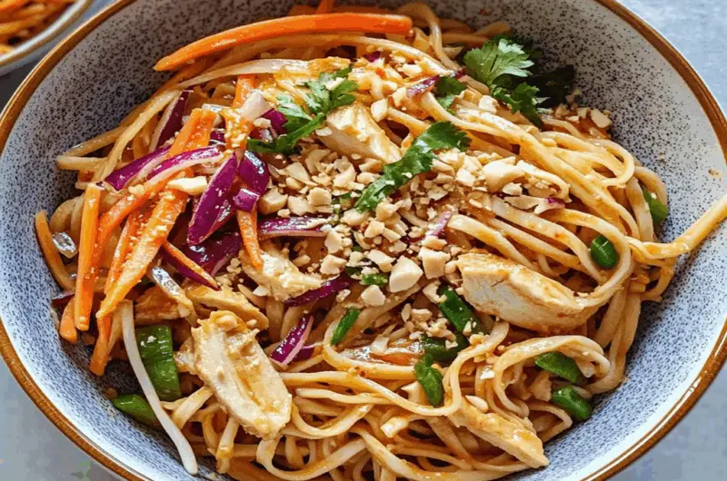 Yes, you can prepare Thai-inspired cold noodle salad in advance! This makes it an ideal dish for meal prep or gatherings. To ensure freshness, cook the noodles and chop the vegetables ahead of time. Store them separately in airtight containers in the refrigerator. Assemble the salad just before serving; this way, the noodles won’t become soggy. The flavors will meld beautifully if you let it sit for about 30 minutes after mixing the dressing with the other ingredients.