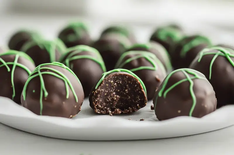 Transfer your beautifully rolled Thin Mint Truffles onto a decorative plate. They are now ready to impress your guests or satisfy your sweet cravings!